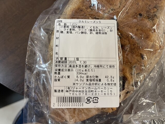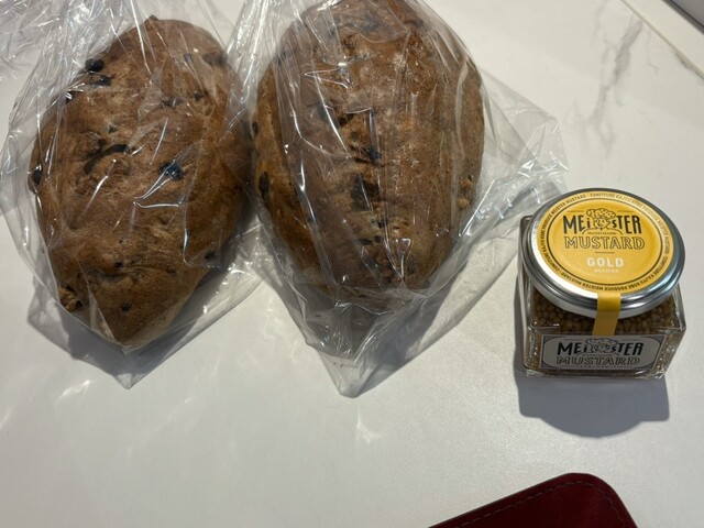 クロワッサンとくるみレーズン、ハード食パンを購入。
