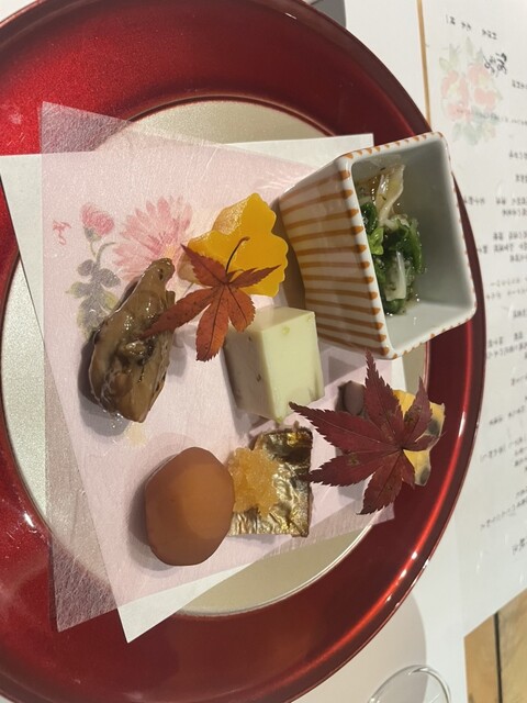 まず見た目の美しさに感動。季節の彩りを取り入れた盛り付けは、まるで芸術品のようで、目でも楽しめるお料理でした。一品一品に丁寧な仕...