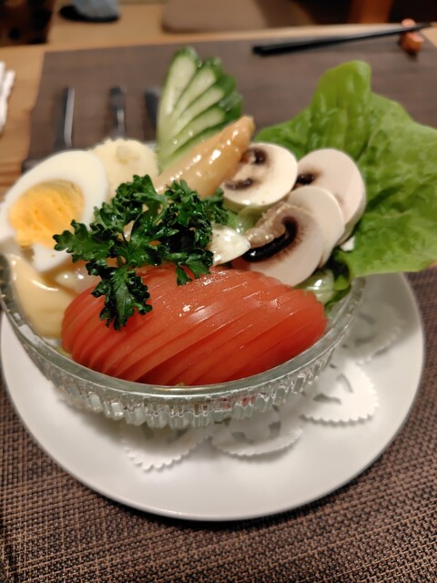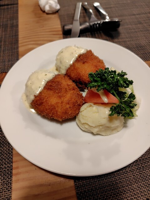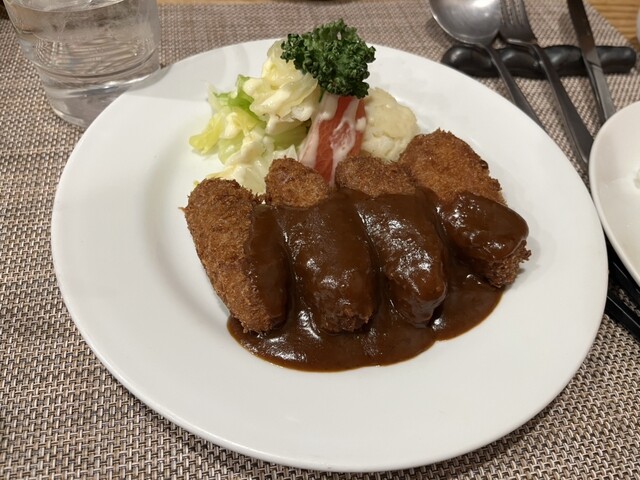 平日の夜、予約を入れて訪問。予約は前月の30日に次月の予約を受け付ける方式。野菜サラダ、カニクリームコロッケ(タルタル)、チキンマカロニグラタン、ヘレビーフカツレツ、オムライスに生ビールを注文。165...