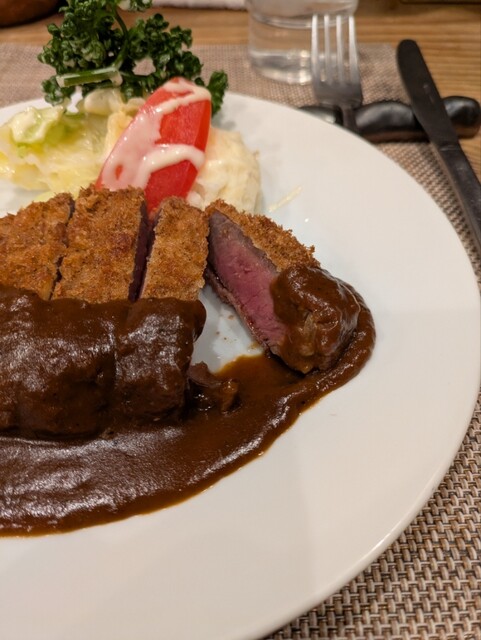 ビーフカツレツとランチセットを注文しました、とてもおいしかったです。カツはしっかりレアになっていてとても良かったです。ここはサクラライス?が有名と知らずに頼みました、次も来てみたい...