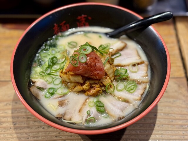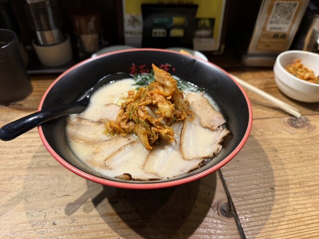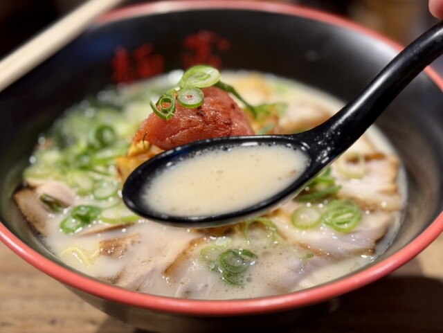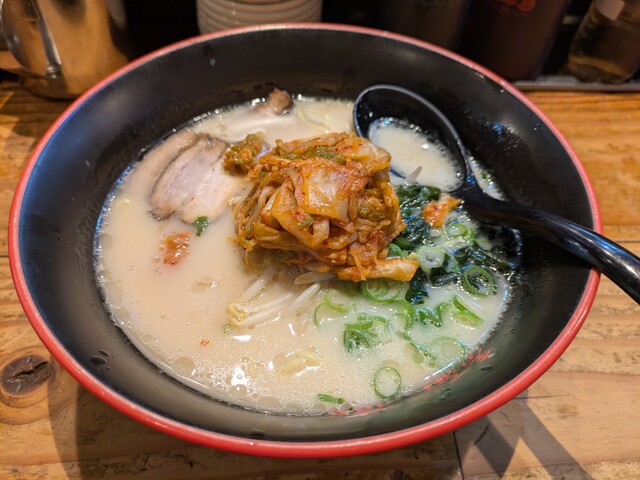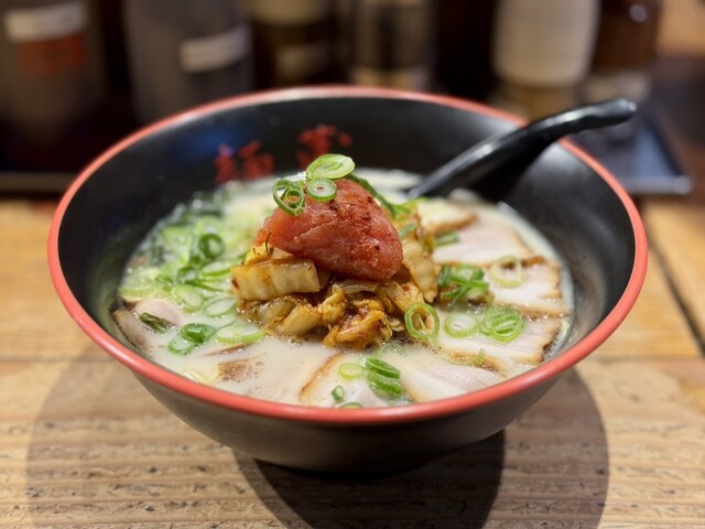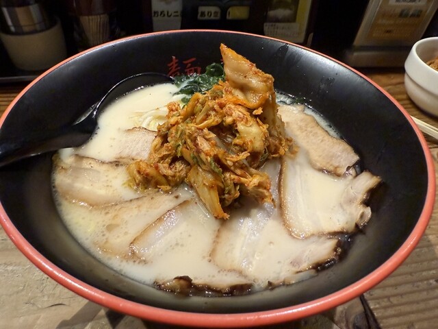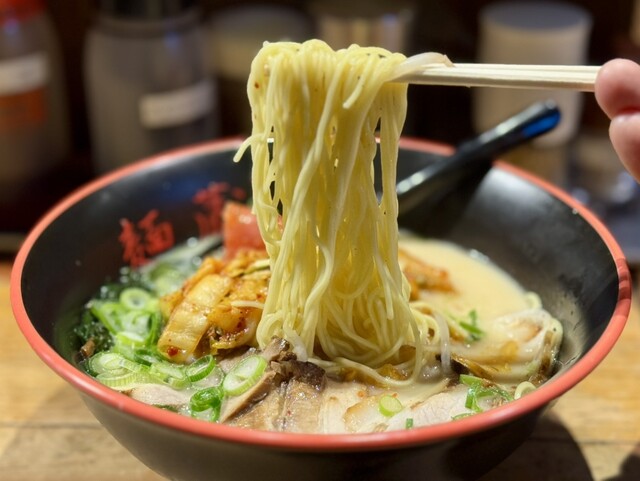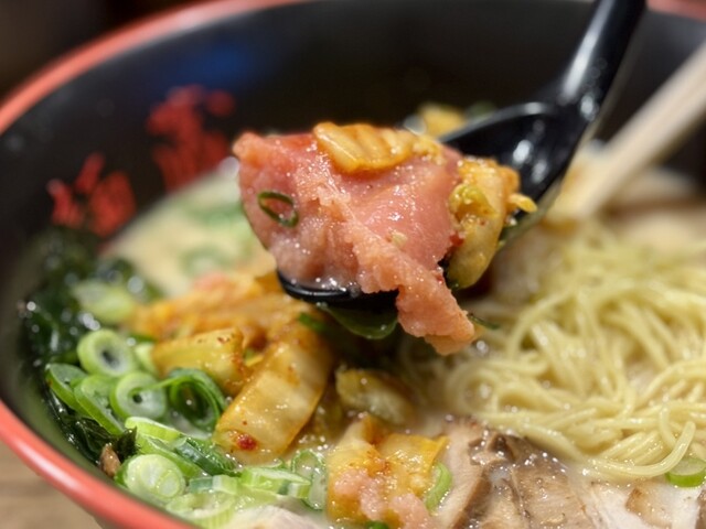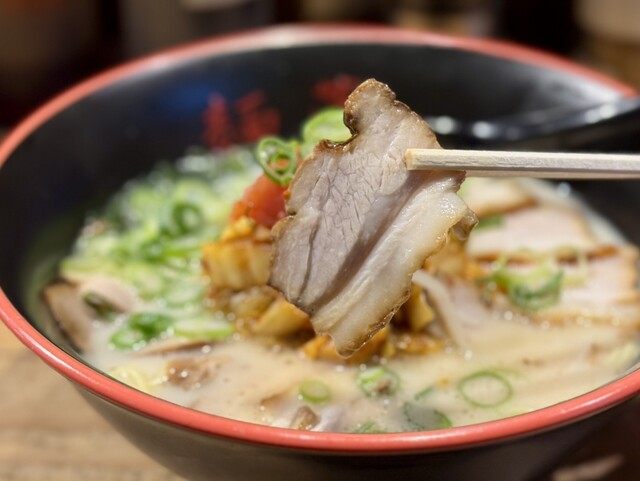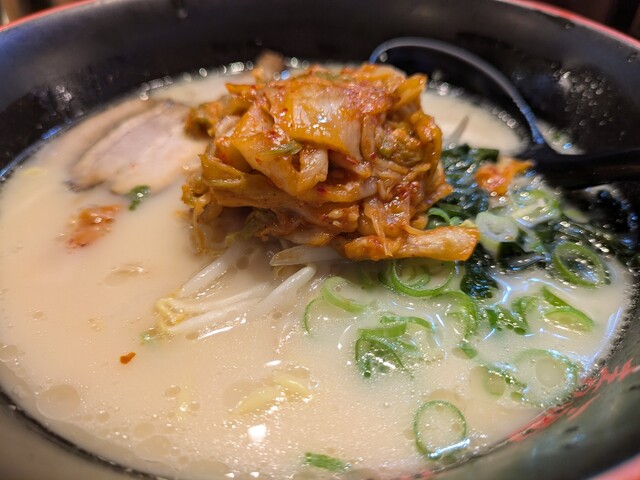 → 創業以来、100%豚骨と豚バラ肉からダシをとったあっさり白湯スープに、自家製キ...