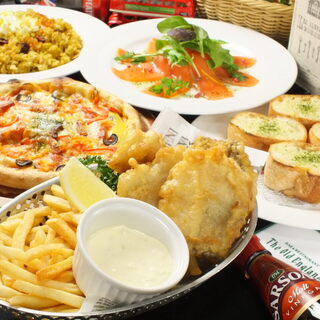 「【英国名物フィッシュ&チップスがついた全9品】忘年会に★飲放付\4180(税込¥4590)」がおすすめです。