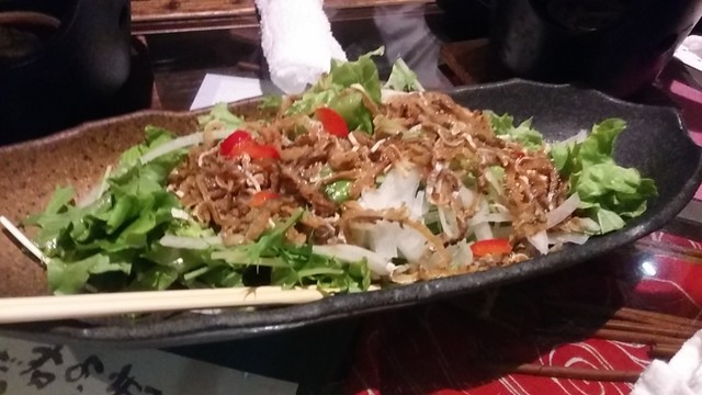 旬のお刺身三点盛、薩摩黒豚の紙鍋、サラダから、〆のお蕎麦まで文句なしでした。