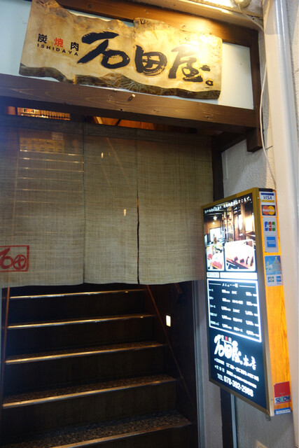 兵庫県神戸市中央区北長狭通にある炭焼肉 石田屋。 本店にお伺いしました。阪急 三宮駅の東口から徒歩約2分、JR線 三宮駅の西口から徒歩約2分、地下鉄 三宮駅の東8番出口から徒歩約1分のところにあるので、公共交通機関からアクセスしやすいです。駐車場はありませんが、近くにはコインパーキングがあるので、自動車でのアクセスも便利です。