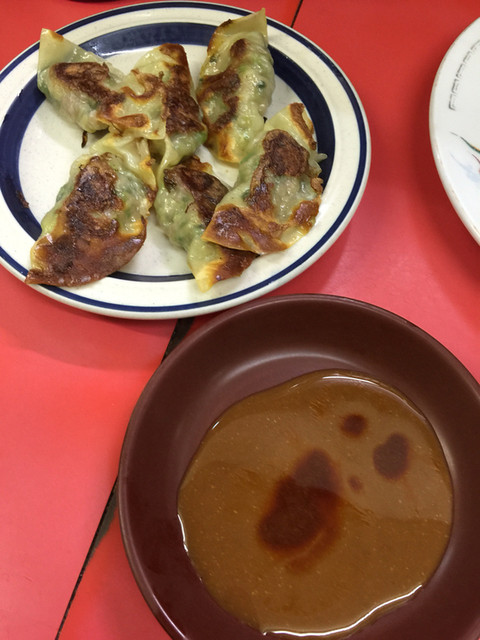 餃子は神戸らしく味噌ダレで食べるスタイル。そこに好みでラー油だったりニンニク醤...
