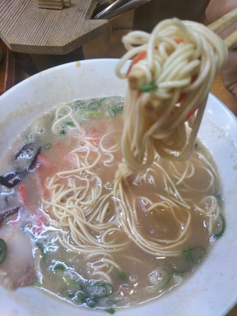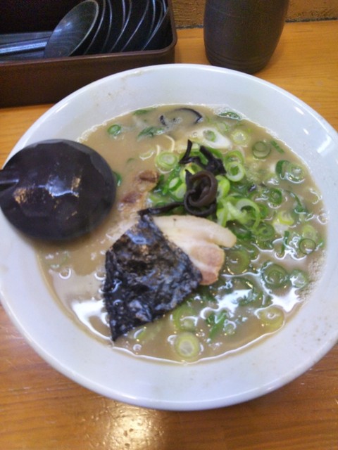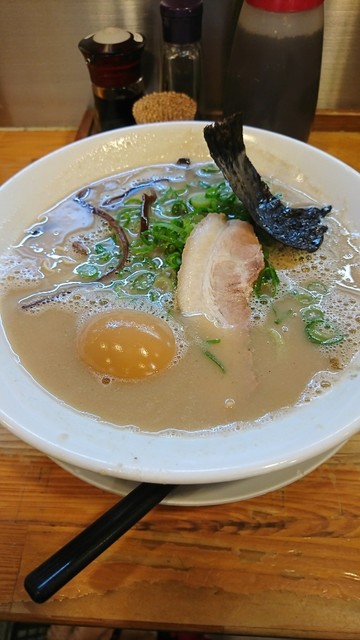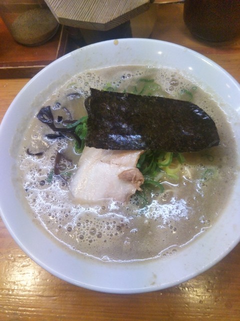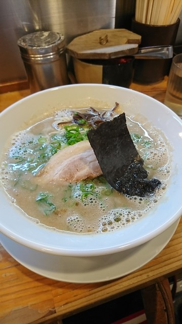 カウンター席の立ち食いで、博多の長浜屋台を彷彿させる「豚骨ラーメン」を中心に据え