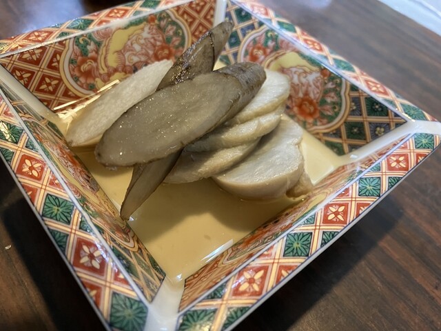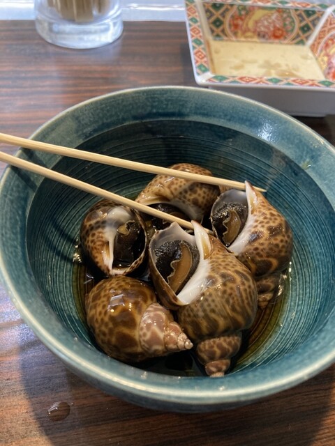 バイ貝、小芋の煮込み、珍味の珍しい海藤花もいただきました。