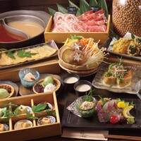 兵庫県産三田ポーク×もち豚のWしゃぶしゃぶが楽しめる、美肌・健康志向の冬コース。豆富づくしの前菜やリゾット、お土産付きで会社宴会にもおすすめ。