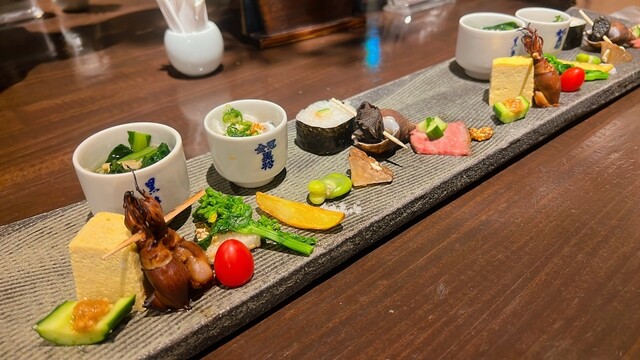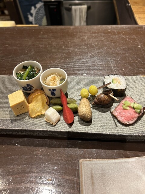 電話で当日予約をしたところ、コース料理のみの対応とのこと。 値段の違う「おまかせコース」が3種類あり、一番お安い6,600円のコースをオーダー。 が、品数・ボリュームともに大満足な内容で、もっと良いコースだったら食べ切れなかったかも。 何と言っても、前菜盛り合わせから手の込みようが半端ない。 ... 詳細を見る