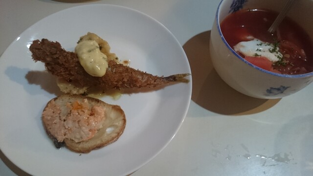 下調べして、土日祝日限定のオードブルランチ(1,000円)を目当てで来ましたが、Bランチ(ステーキ)(1,500円)orパリ食堂セット(2,200円)のみ提供との事でした(確かに下の看板にも何も出て無かった)
