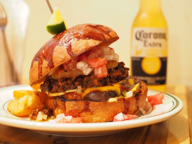 大安亭市場のやまくら精肉店より毎日仕入れる新鮮な国産牛100%のパティを炭火で焼き上げたハンバーガー専門店【エスビーダイナー コウベ】。定番のハンバーガーから、ほかでは味わえないような創作ハンバーガーまで種類豊富にご用意しております。また、オリジナルドリンクなど飲み物も充実のラインナップ。異国情緒溢れるお洒落な空間は、お一人様や女子会、デートにもぴったりです◎