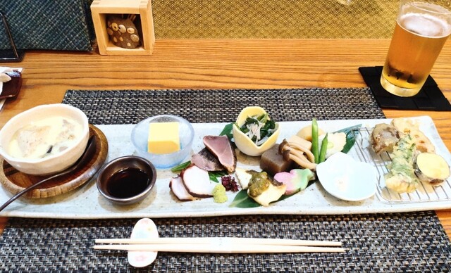 但馬牛・近海の海鮮・地野菜など旬の食材を使った季節料理の数々。和食と相性抜群の地酒も充実。