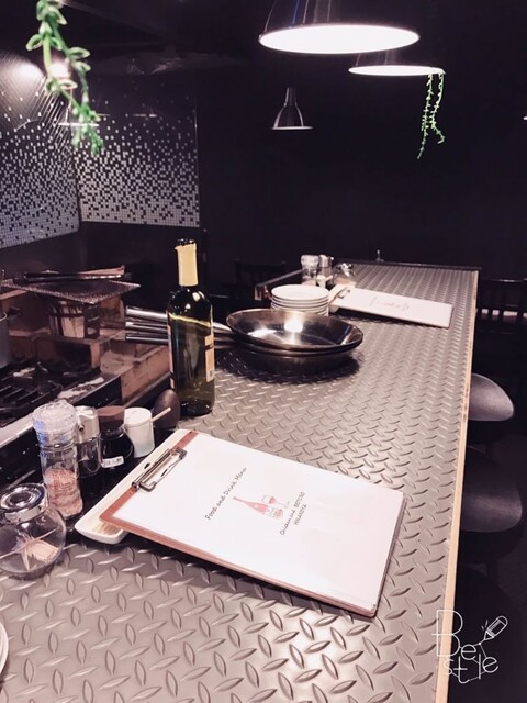 シルバーとブラックに統一されたスタイリッシュな店内は、神戸市の都市デザイン賞を受賞しました。ライブ感あるオープンキッチンを囲むようにカウンターがあり料理が作られていく様子を眺めることができます。