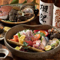 地酒24種2Hプレミアム飲放付 豪快鮮魚姿造り盛/日本酒と共に全国直送の美味しいものを七輪で/〆には...