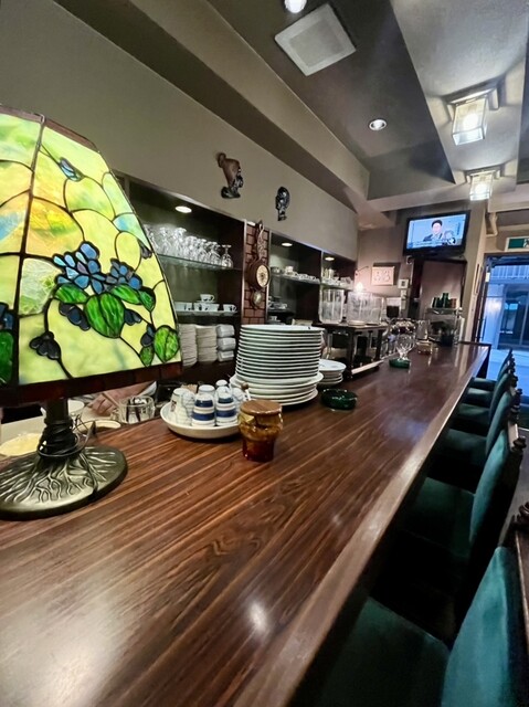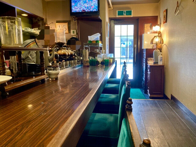 店内は木の温もりがある落ち着いた空間で、カウンター越しにサイフォンのコーヒーが立ち上る香りが心地よいです。
