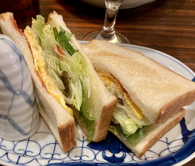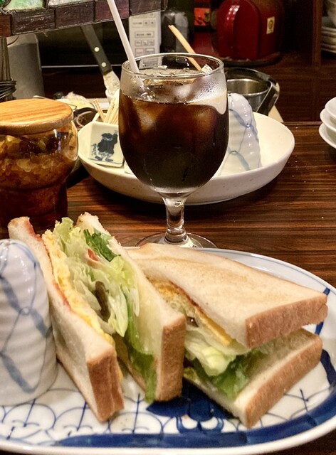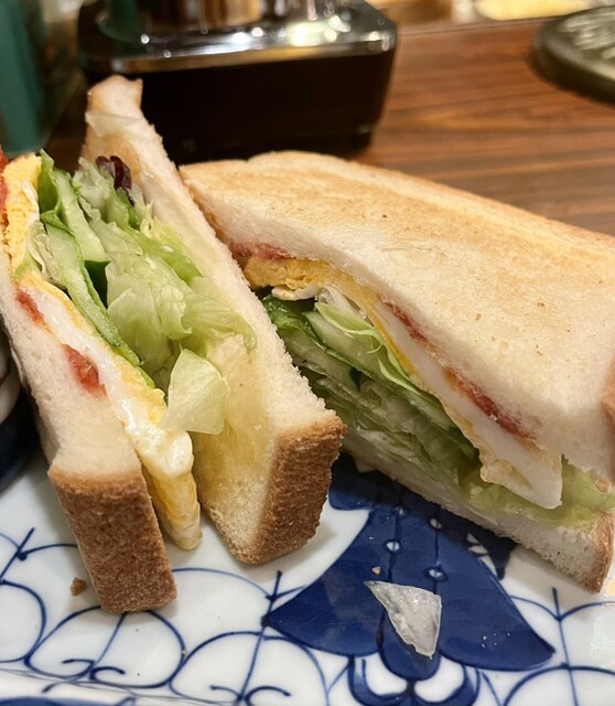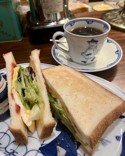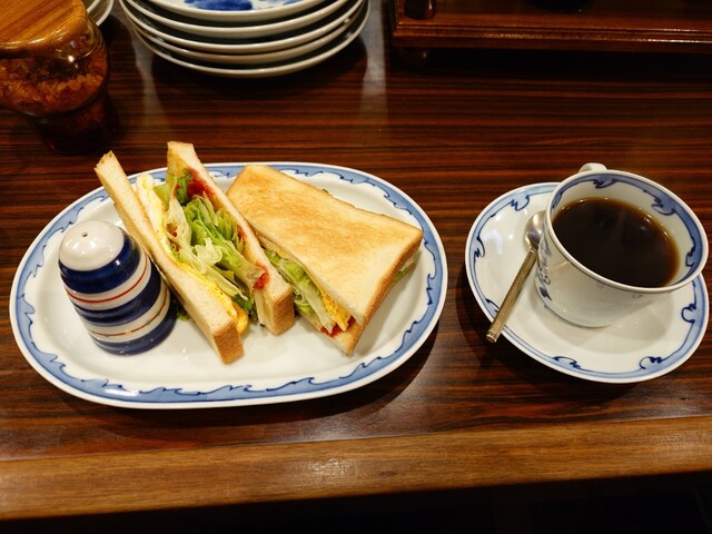 モーニングは、厚めに焼かれたトーストで作る卵のサンドイッチとブレンドコーヒーのセッ...