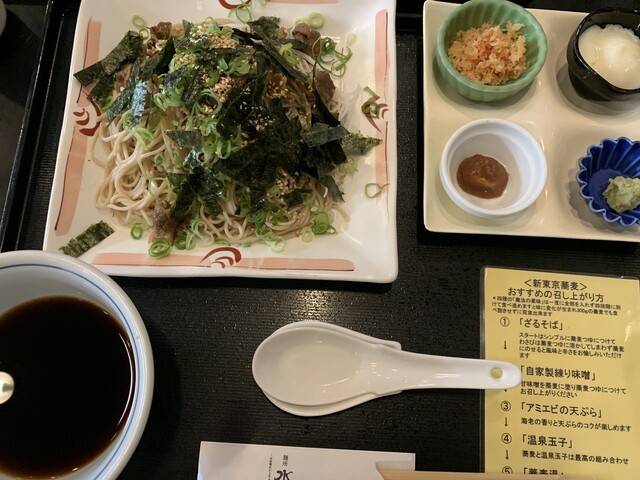 ランチで利用しました。 1階の4人掛けテーブルに通され、 いつもは定番の新東京蕎麦を頼みますが、今回は蕎麦ランチがあったので注文。冷たい蕎麦にも変更できて、天ぷら、小鉢、ご飯は... 詳細を見る