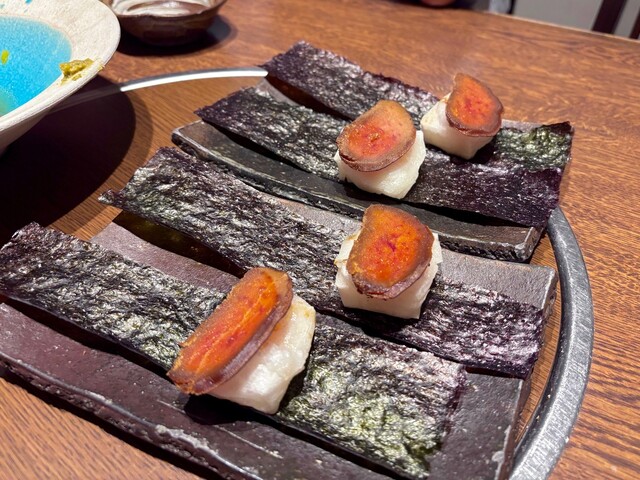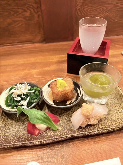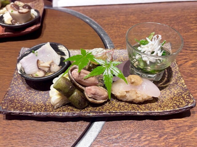 播磨・但馬・丹波・淡路・摂津の酒、神戸・淡路・明石の魚、県内各地の野菜達、 実に、嬉しい店でした。 ◎お付き出し〜小芋含め煮に椎茸餡掛け・葡萄2種の白和え・菊菜お浸しにしら... 詳細を見る