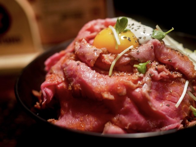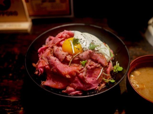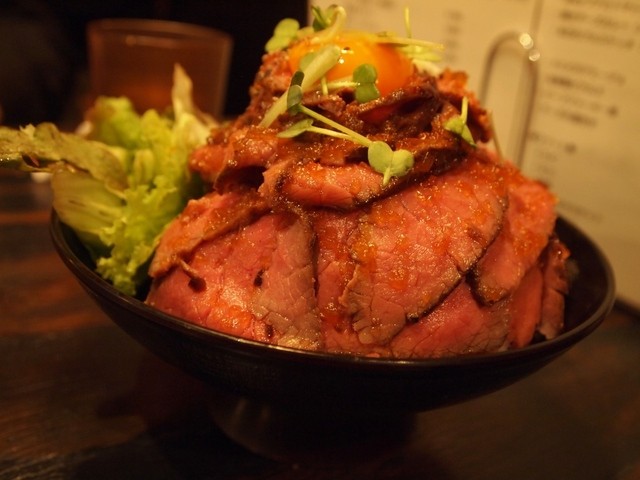 やわらかローストビーフ丼とその場でジュージュー焼くステーキ丼を手軽に、バルで★本格派!!