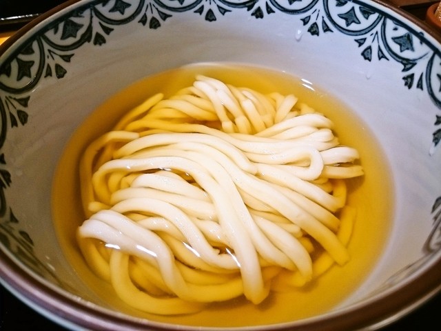圧力釜で湯がくモチモチうどん 。阿波尾鶏や淡路牛のつけ汁が山椒油で二度美味しい!