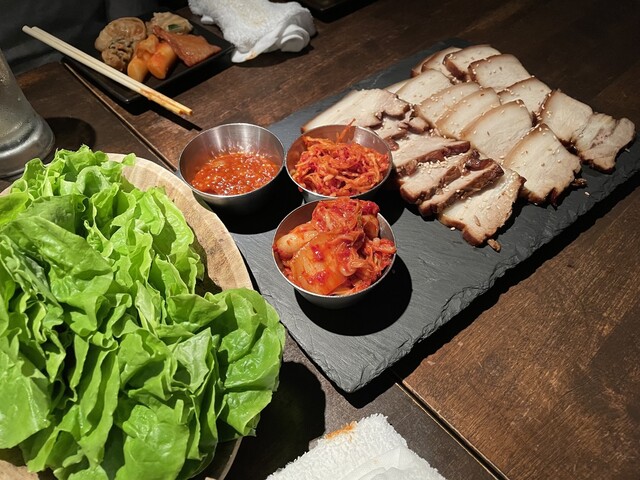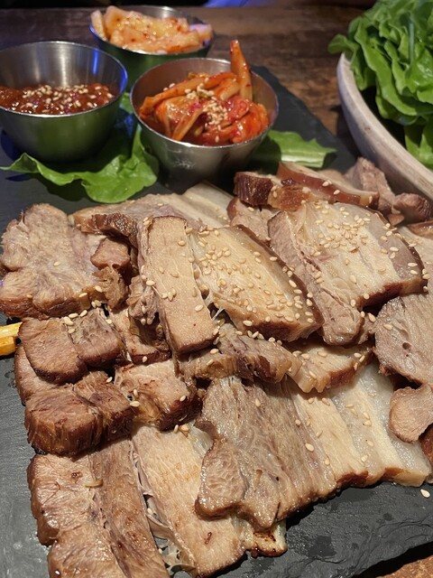 神戸サウナの脇手、駐車場入口の目の前にあるビルの2階にある韓国料理の居酒屋。 店内はミラーボールがあったり、カラフルなネオンが光っていたり、K-POPアーティストのMVが壁に... 詳細を見る