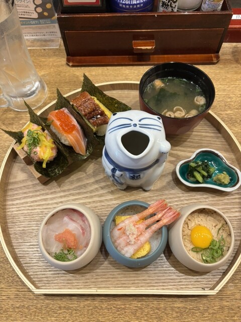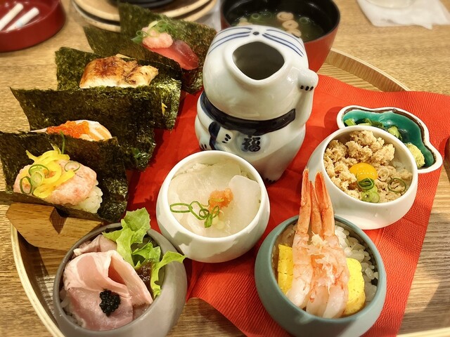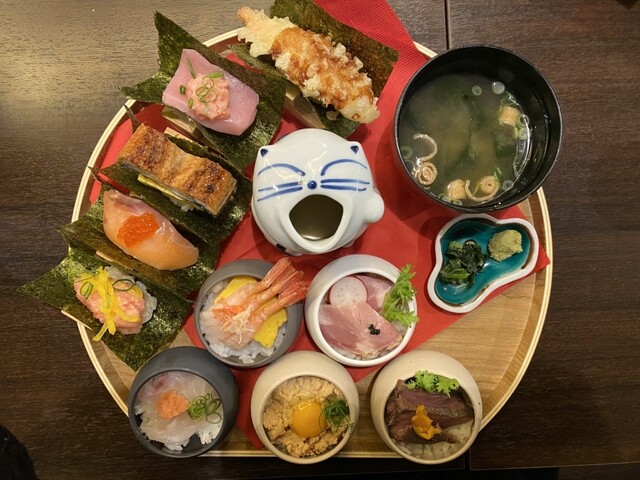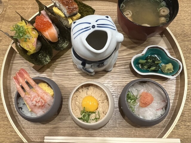 見映えも良く思ったより、小鉢に入ってるお寿司が小さかったので、女子でも10種食べれました。鯛茶漬けがありますが、最後に頂こうとするとお出汁が冷めてしまって美味しさ半減以下になってしまったのが残念でした...