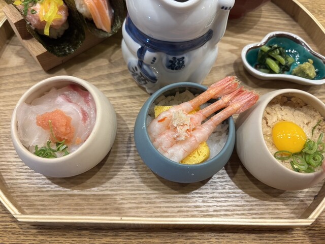 ランチでよく利用しています。最近はおちょこ丼のランチメニューが大人気で、今回は6種をいただきました。味、ボリュームは十分に満足出来ます。また、見た目も楽しめてインスタ映えするので大人気になるのは納得で...