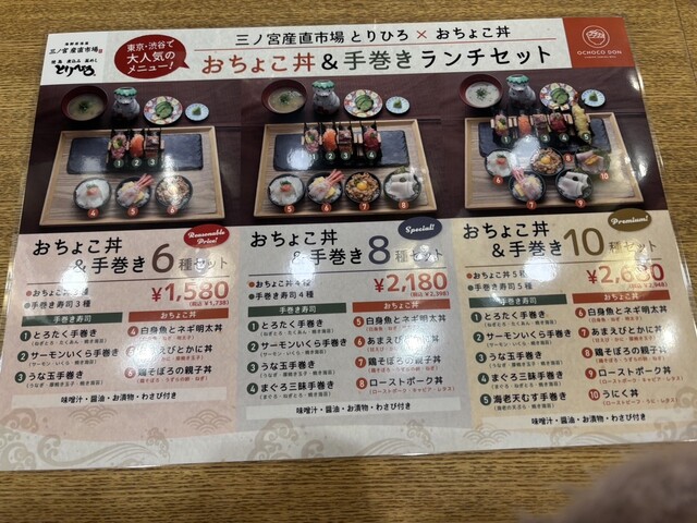 前から気になっていたおちょこ丼と手巻き寿司のセットをやっと食べに行けました。