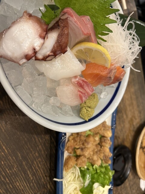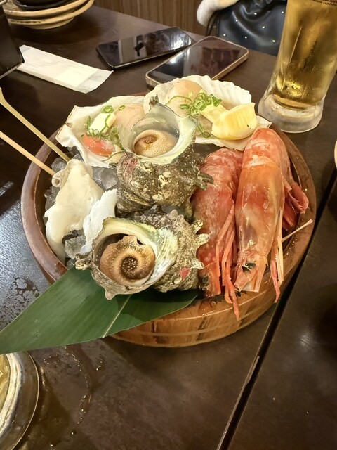 三宮駅から歩いてすぐ近くにあり、店内の雰囲気も提灯が飾ってあったりと温かい感じの居酒屋さんでした。お昼12時で予約して行って良かったと思いました。次々とお客さんが入っていて一階から三階まで満席で人気の...