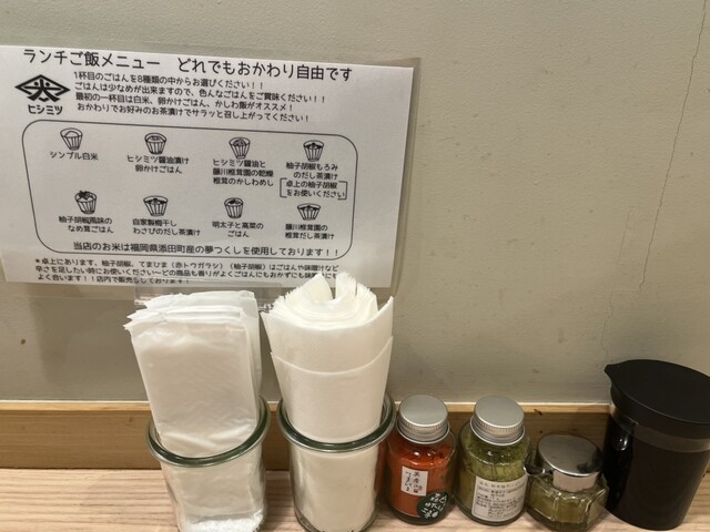 こちらのお店の特徴は白飯からお茶漬けまで8種類のご飯を何度でも無料で楽しめる...