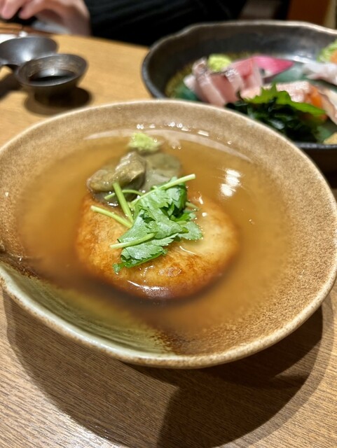 最初にいただいたのは「茄子の揚げ浸し」。じゅわっと...