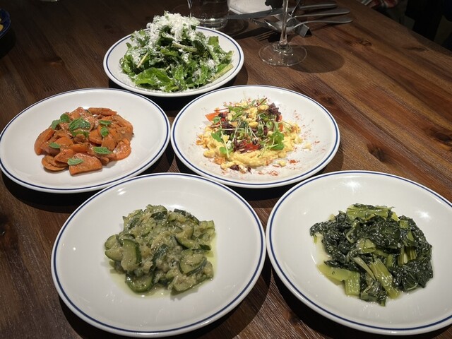 その日届いた兵庫の旬野菜を中心に、 彩り豊かな小皿前菜をご用意いたします。 香り・食感・温度にこだわり、 ローマのエッセンスを添えた軽やかなスターター。 ワインと響き合い、特別なひとときを演出します。 追加分の前菜、パスタ、メインはアラカルトとなっております。