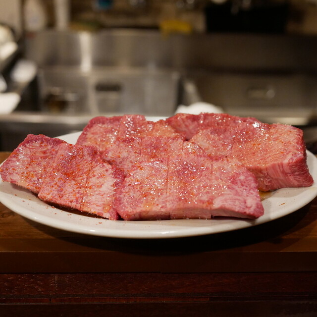 名物はなんと10cmの極厚タン!インパクトのある見た目もさることながら、オリジナルのニンニクチップで食べるタンは程よい脂の甘さとぷりぷりサクサクの触感で、最高の味わい!