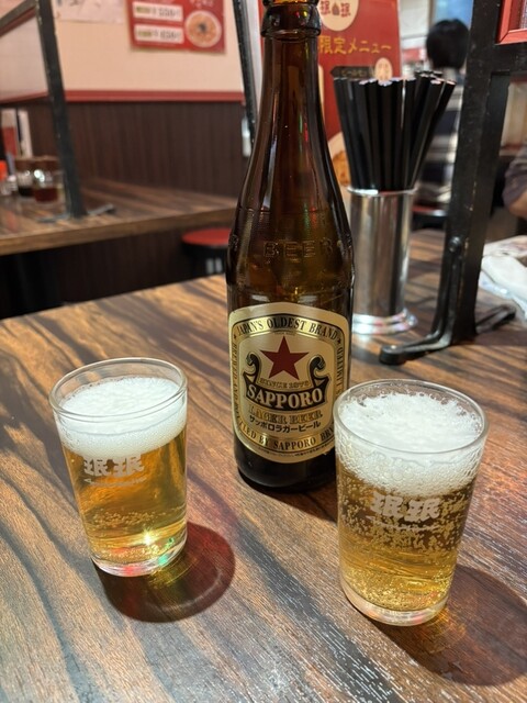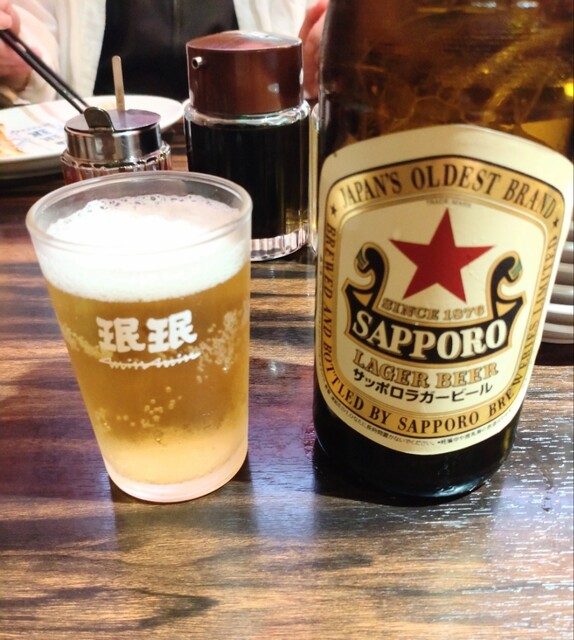 赤星、飲みやすい〜。息子と2人で乾杯♪