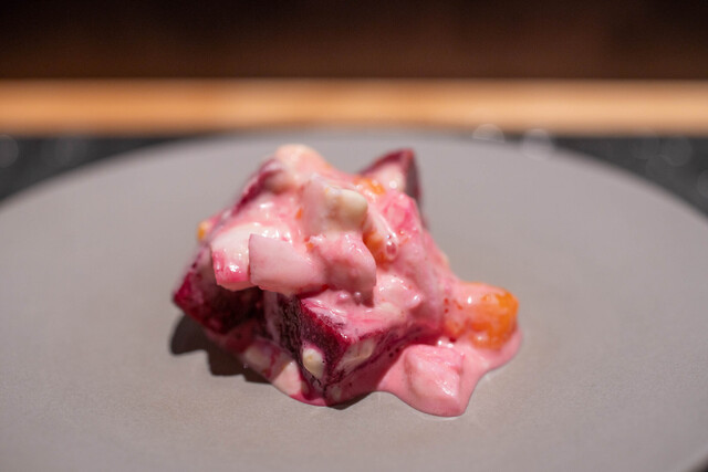 トンカツとワイン 日月。とんかつ。 女性二人でやっている。笑顔が素敵。接客がとても丁寧。店内は黒を基調としたシックなもの。油っぽさはなく清潔。 コース仕立て。ワンドリンク必須。 ビーツと玉子 ヒレカツ ロースカツ クロックムッシュ れんこん、水茄子の揚げ物 リブロースカツ ... 詳細を見る