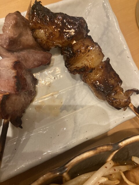 ビールが安くてうれしいやきとん屋。お通しは大きなシューマイでした。やきとんは1本165円から、大きさは普通の焼き鳥サイズでした。たま串は80円と安く甘だれがたっぷりと浸かってて酒のツマミに最高でした。...