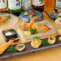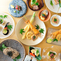 【ディナー】匠(TAKUMI) 先付け お造り2種 季節の揚物9種 お口直し(十割蕎麦) 季節の焼き物など 食事など自慢の逸品8品を味わう