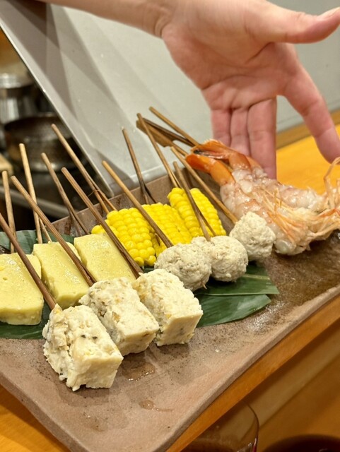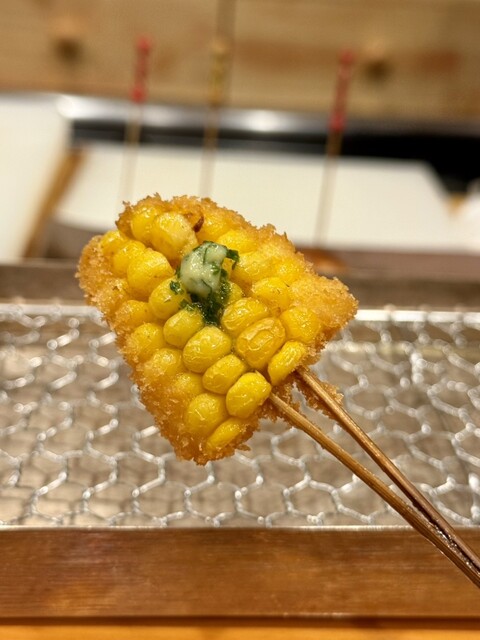 高級感のある大人の空間で、和食会席のような形でお召し上がりいただけるコースをメインにご提供する【眞しま】。職人技が光る、季節の旨味を凝縮した串揚げが自慢です。こだわりの油で軽い衣に仕上げるので、何本でもお楽しみいただけます。串揚げに合う日本酒も豊富に揃えておりますのでぜひ。落ち着きのある空間にはカウンター席やテーブル席を完備しておりますので、大切なデートやお仲間とのお食事などにぜひご利用ください。