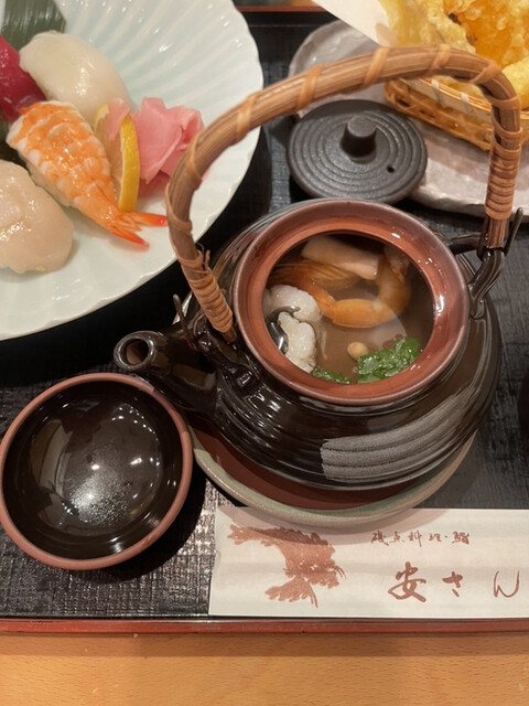 神戸で60年愛されてきた老舗鮨屋【安さん】、その系列店が当店【磯魚料理鮨 安さん 神戸大丸店】です。本店仕込みの伝統の味で料理を提供。鮮度にこだわった魚介を仕入れ、百貨店内にありながら、本格的な鮨や海鮮料理を楽しめます。昼限定のお得な御膳や人気料理を集めた御膳コースなど、メニューを選びやすいようにセットを豊富にご用意しております。店内は一部貸切もできるので、各種お集まりの際はぜひ。 |