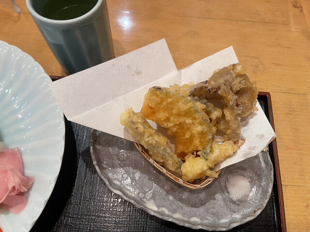 茄子、南瓜、舞茸、銀杏 サクサクに揚がっていておろし天つゆで頂きました。