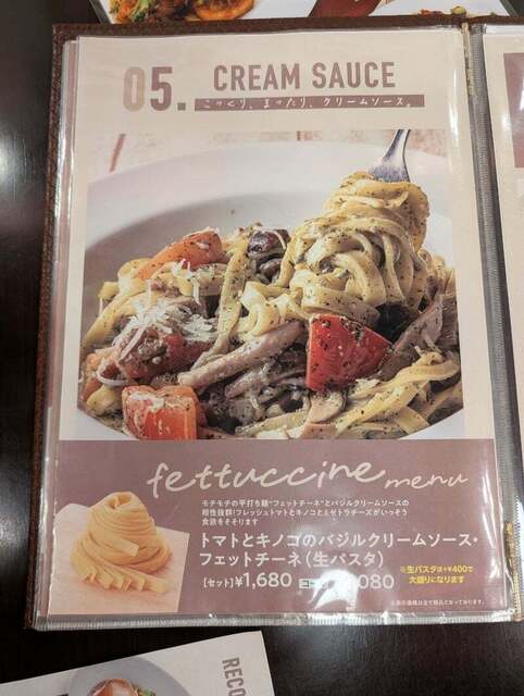 トマトときのこのバジルクリームソース・フェットチーネ(セットで1680円)