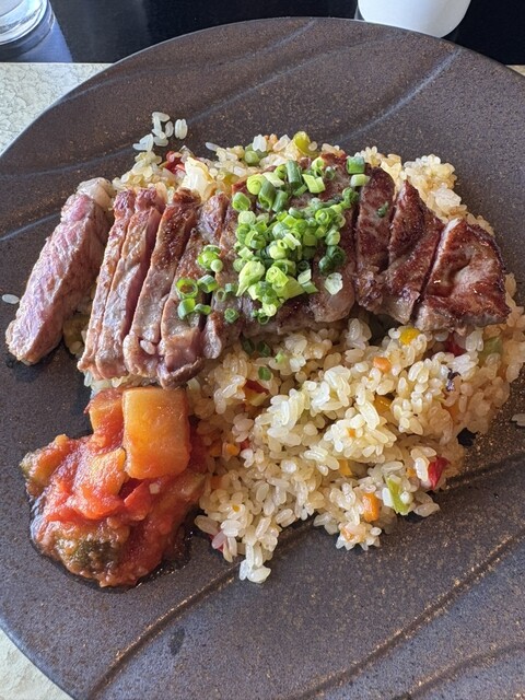 今日はコンチェルトのティークルーズでの鉄板焼きコースで大人2人と子供2人。クルーズ時間が14:45〜の為、軽くお昼を食べてから乗船しました。大人はビーフカレーにサーロインがオンしたものと、ピラフにオン...