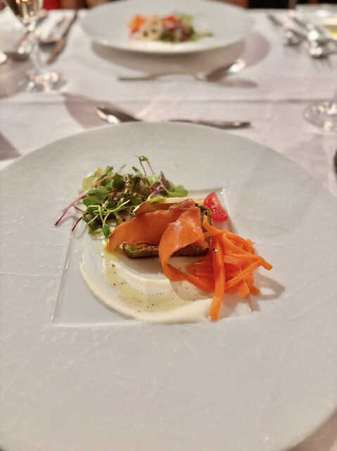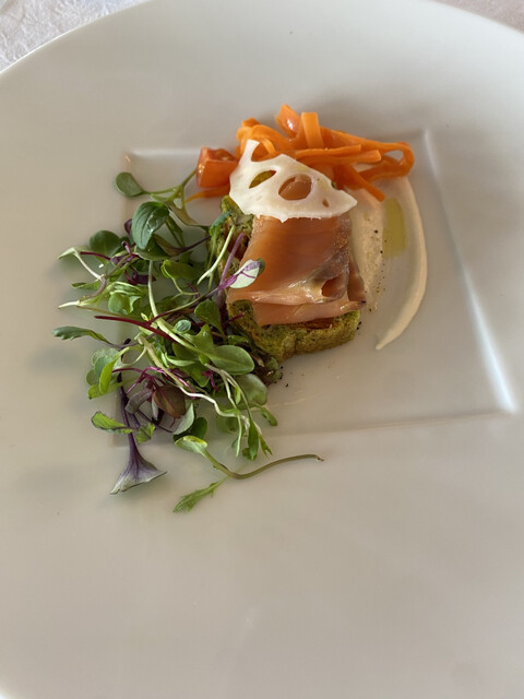 ■前菜【炙ったアトランティックサーモンマリネ 南瓜と木の実のサラダ】