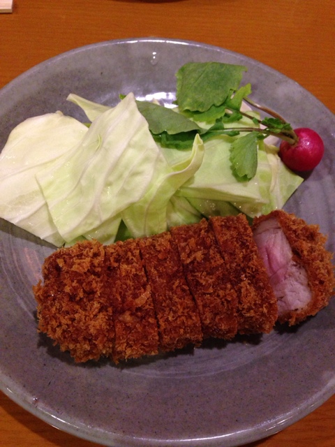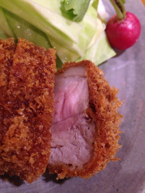 ・トンカツ定食(ロース)(2,600円)ずいぶんと分厚いロースカツを、カットされて持ってきます。1つを持ち上げると、ずいぶんとジューシー。なるほど...