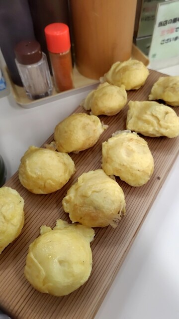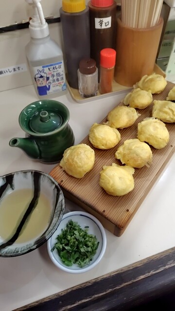 目的は「明石焼き」でしたが、メニューをさがしていると、「一人前でいいですか?」と聞かれてしまいました。「はい」と答えて待ちます。「明石焼き」がデフ...