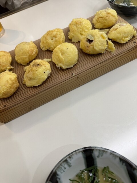 目的は「明石焼き」でしたが、メニューをさがしていると、「一人前でいいですか?」と聞かれてしまいました。「はい」と答えて待ちます。「明石焼き」がデフ...