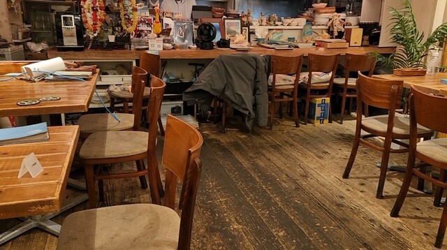 店内が明るく、落ち着いた雰囲気です。おしゃれなインテリアや木の温もりが感じられるテーブル席があり、友人やカップルとの食事にぴったりです。