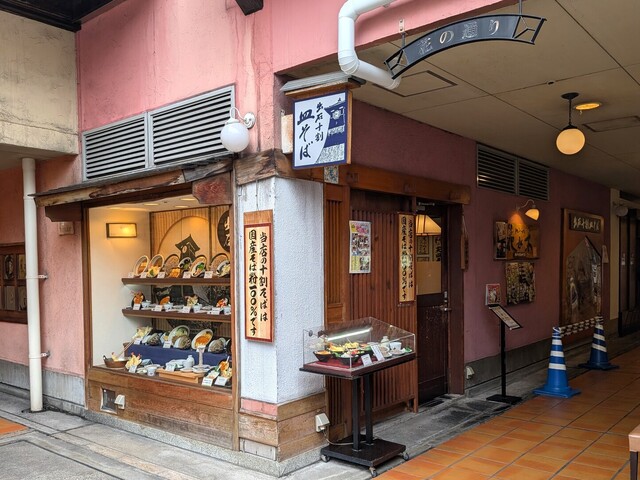 地下鉄「ハーバーランド駅」から徒歩約5分、MOSAIC2階にある手打ちの皿そば店です。