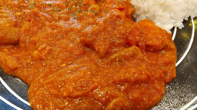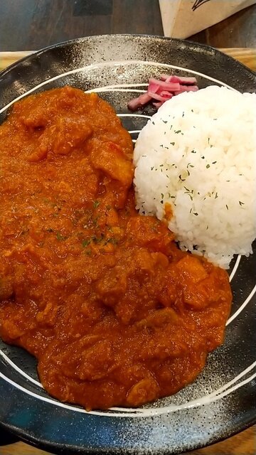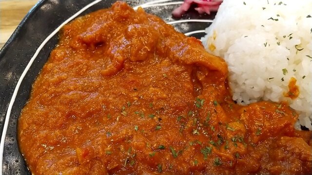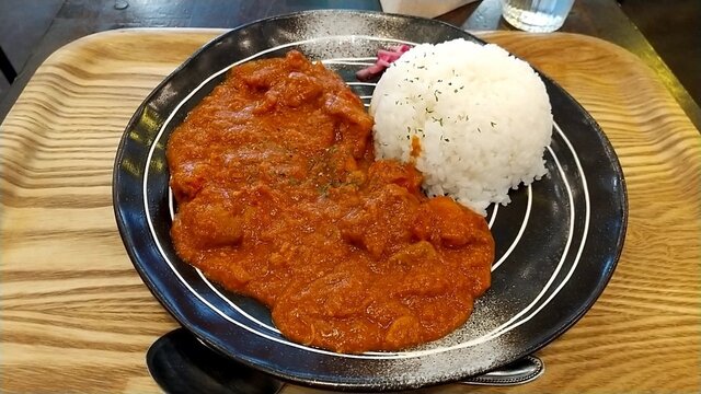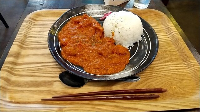 じゃがいも・鶏肉・にんじん・玉ねぎが煮込まれ、煮卵が添えられピリッと優しい辛さ。