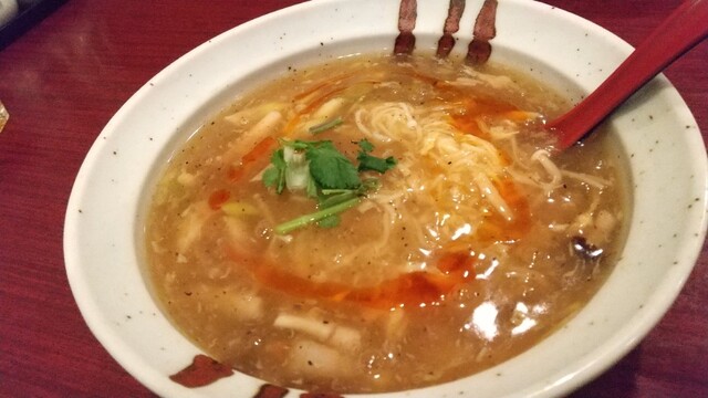 ランチメニューから酸辣湯麺セット(1000円)を注文。ミニ炒飯がつくセットのようです。基本的にセットはメイン(ラーメン、飲茶など)とミニ炒飯とのセットで、1000-1100円と良心的なお値段。